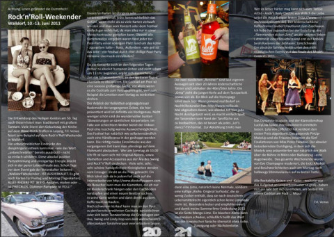 Den Abschluss der Osterzeit feiert man traditionell mit großem Tamtam. Viele feiern den Geburtstag der Kirche auf dem Wave-Gotik-Treffen in Leipzig, andere feiern zum Beispiel auf dem Rock’N’Roll-Weekender in Walldorf. Die unbeschreiblichen Eindrücke des diesjährigen Festivals kann man wie das Wort „unbeschreiblich“ bereits ausdrückt einfach nicht schildern. Diese absolut positive Partystimmung und einzigartige Energiedrückt sich in der puren Lebensfreude aus. Schon tage vor dem Event gab der Veranstalter bekannt: „Walldorf Weekender - IST AUSVERKAUFT. Es gibt noch Karten für Freitag und Montag (Tageskarten), ALLES ANDERE IST W E G. Anrufen, mailen oder ... ist ZWECKLOS. Oldtimer-Parkplatz ist VOLL“